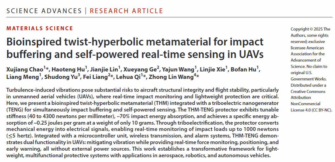 日韩无码 齐乐华教授团队在UAV防护-感知一体化力学超结构研究取得进展