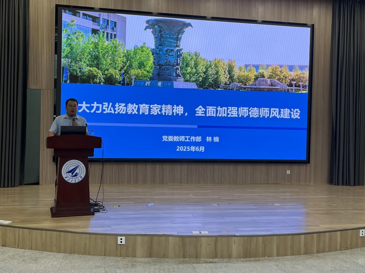 会上,人力资源部副部长林楠首先从师德师风的时代内涵、重要论述、当前所面临的形式以及相关规定和要求等方面作师德师风建设专题培训以及警示教育,通过剖析典型案例引导教职工深刻反思、引以为戒,提醒教职工自觉践行“四有”好老师标准,将师德师风规范内化于心、外化于行,切实担负起立德树人的神圣使命。