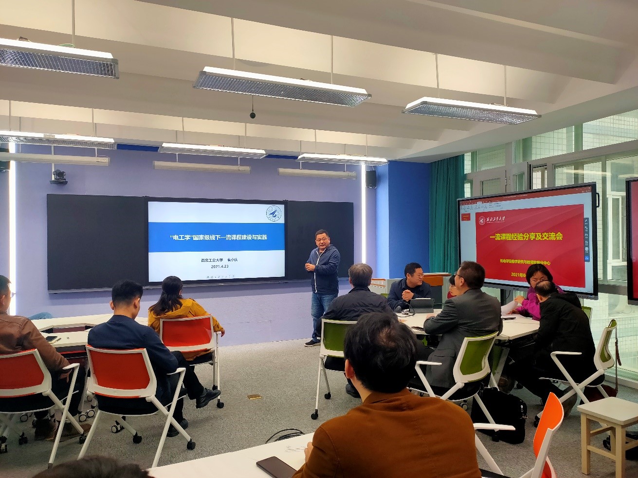 袁小庆副教授代表线下一流课程-“电工学”团队,从课程教学资源建设、教学改革实施、教学设计与实践等关键环节介绍了一流课程建设经验和感悟。