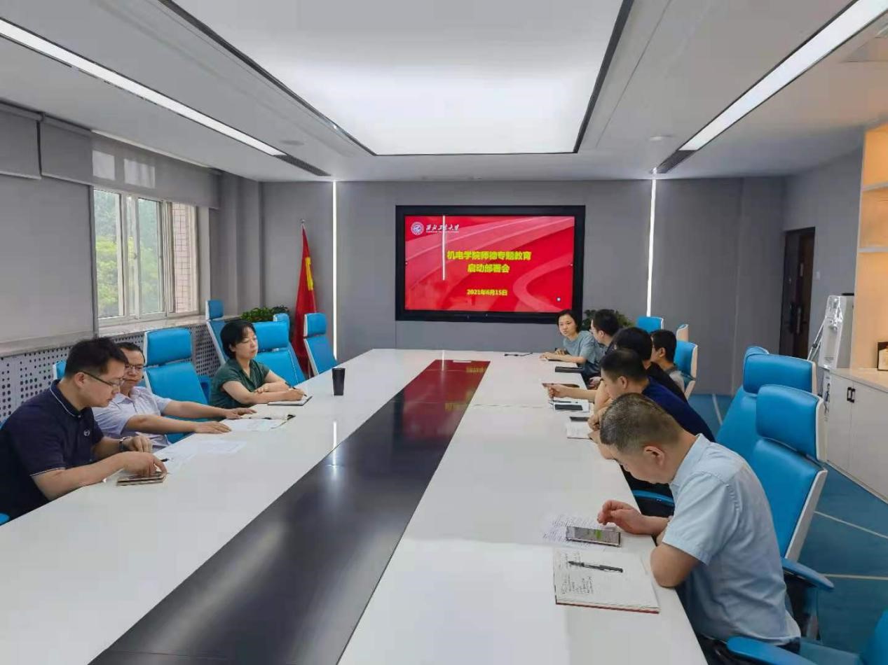 师德专题教育工作进行安排部署,为着力打造高素质教师队伍奠定坚实基础。党委书记张映锋、副书记刘平、院长助理马颖,全体教职工党支部书记、学生辅导员参加了会议。会议由党委副书记佘磊磊主持。