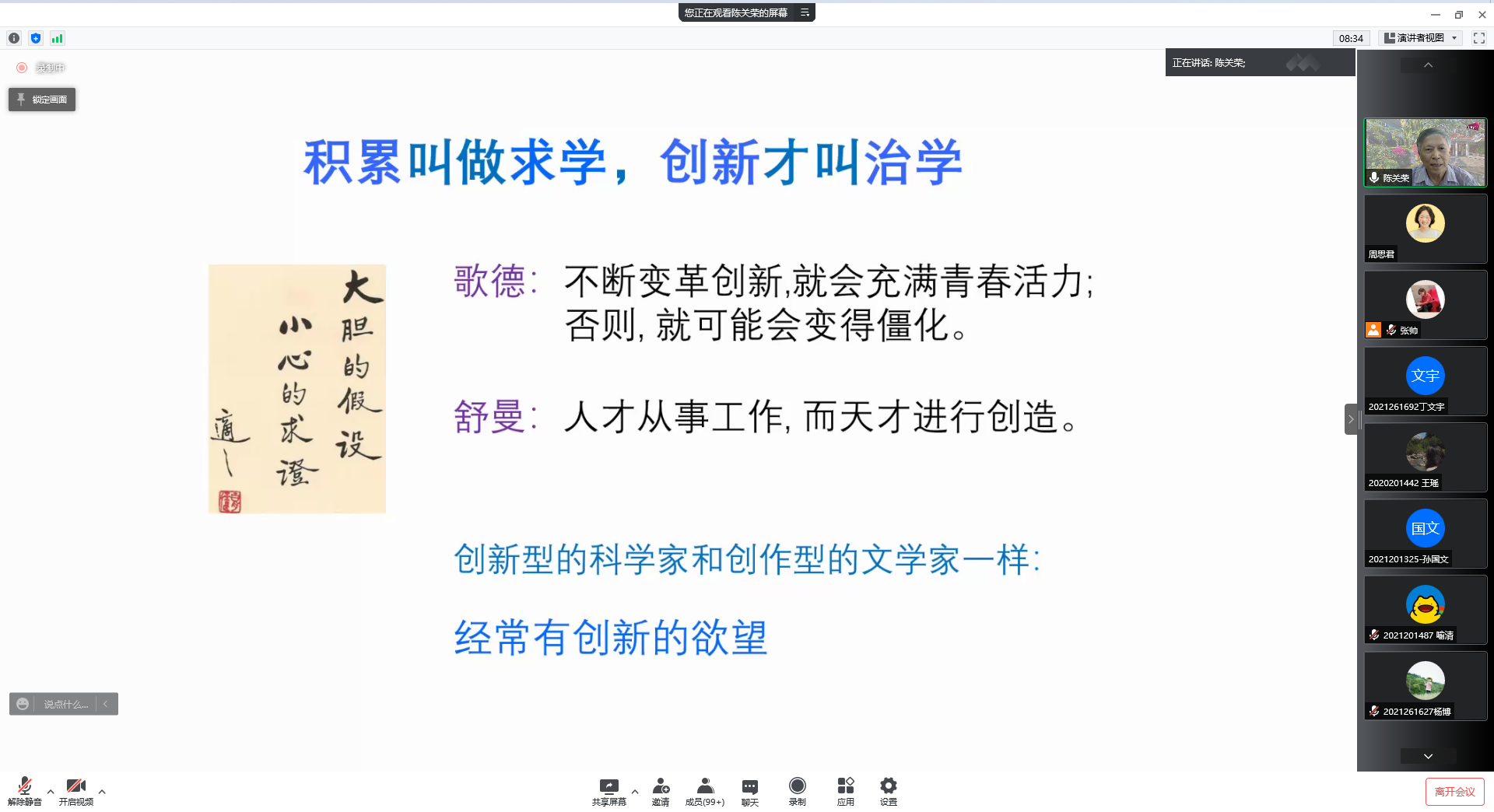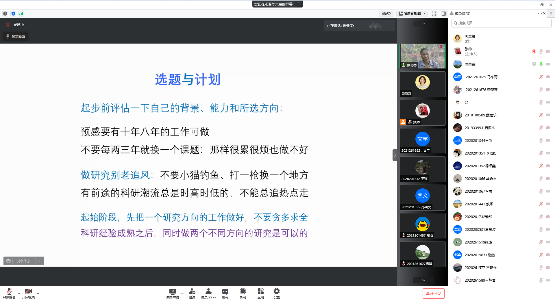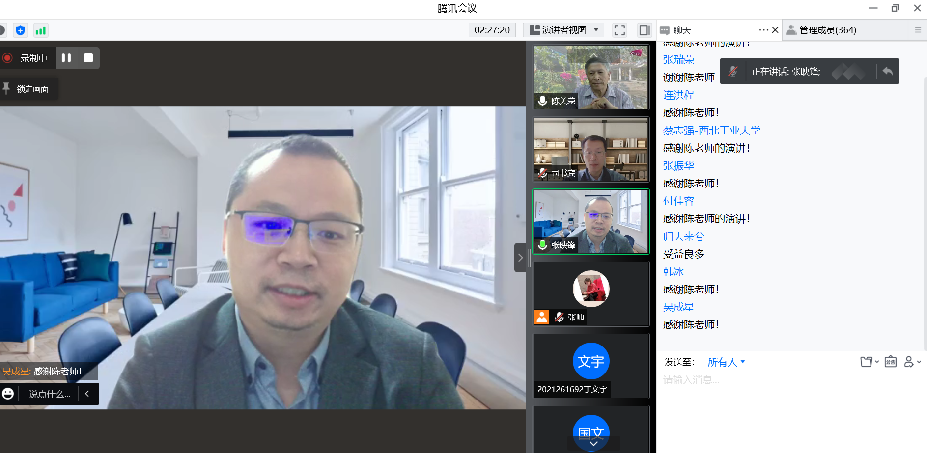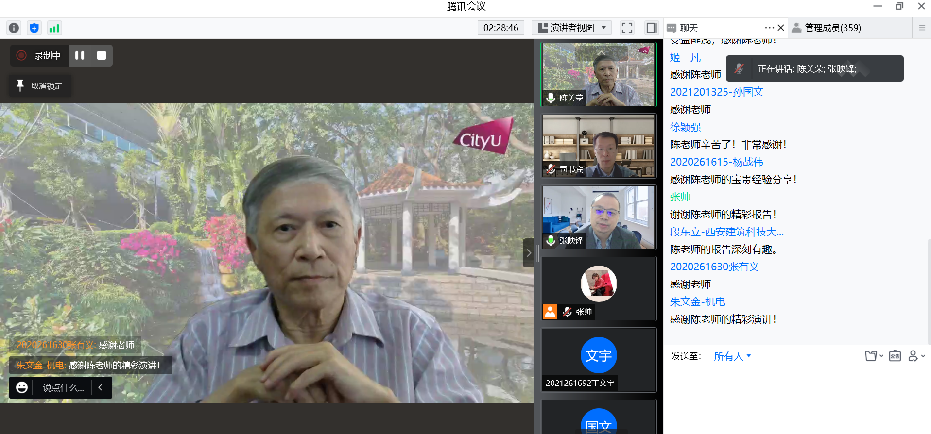 青年教师及学生科研创新工作有着非常重要的启迪作用,强调学院要进一步加强对基础研究的重视和投入,不断提升科研素养,为我们国家的科技强国贡献力量。同时再次对陈教授及与会师生表示了感谢。