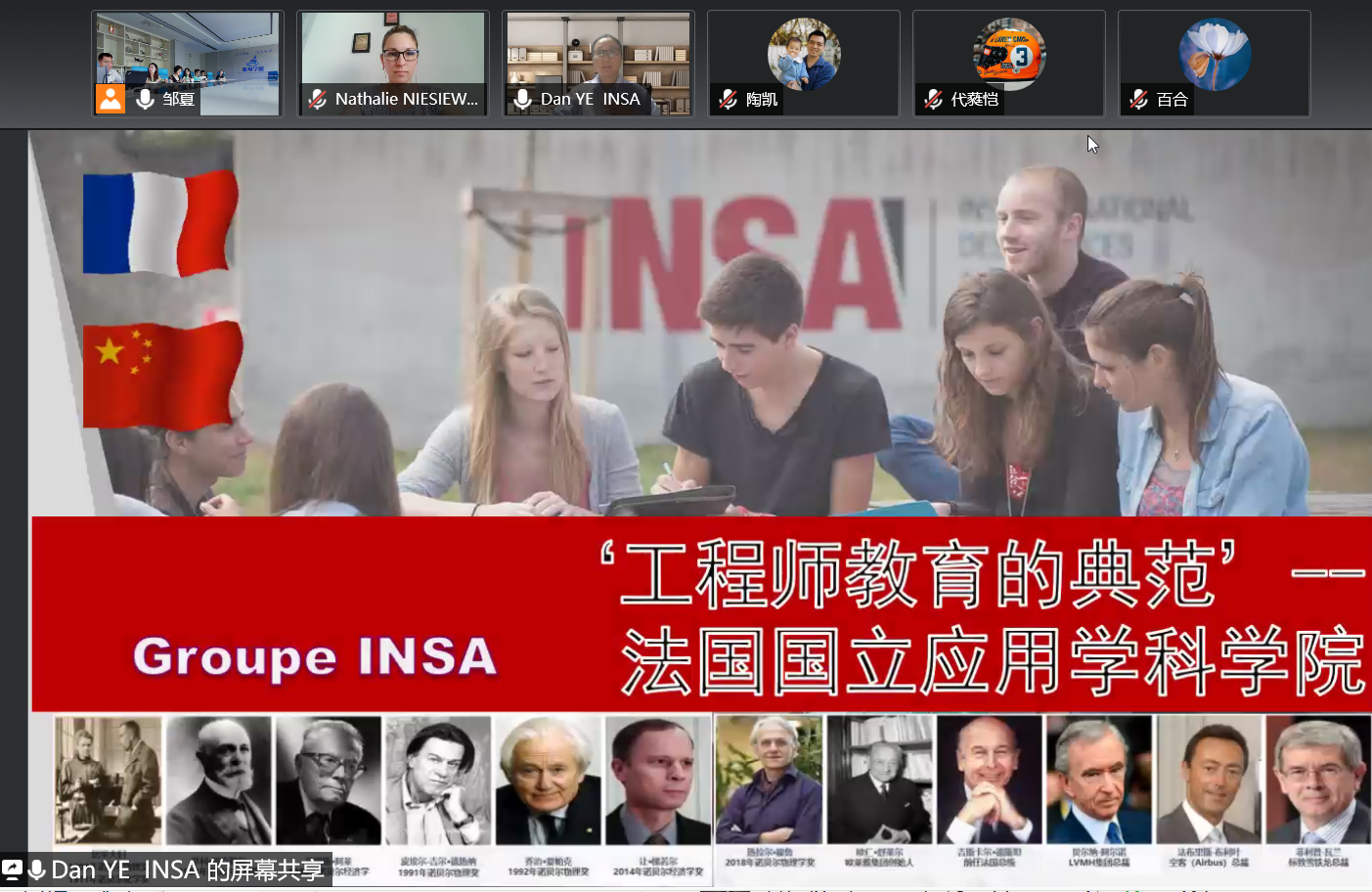 外事秘书邹夏、法国高等教育署西安办事处负责人穆锐、法国国立应用科学学院中方负责人叶丹及在校生参加了此次活动。活动内容主要包括法国留学学习与生活交流以及与INSA合作项目介绍。
