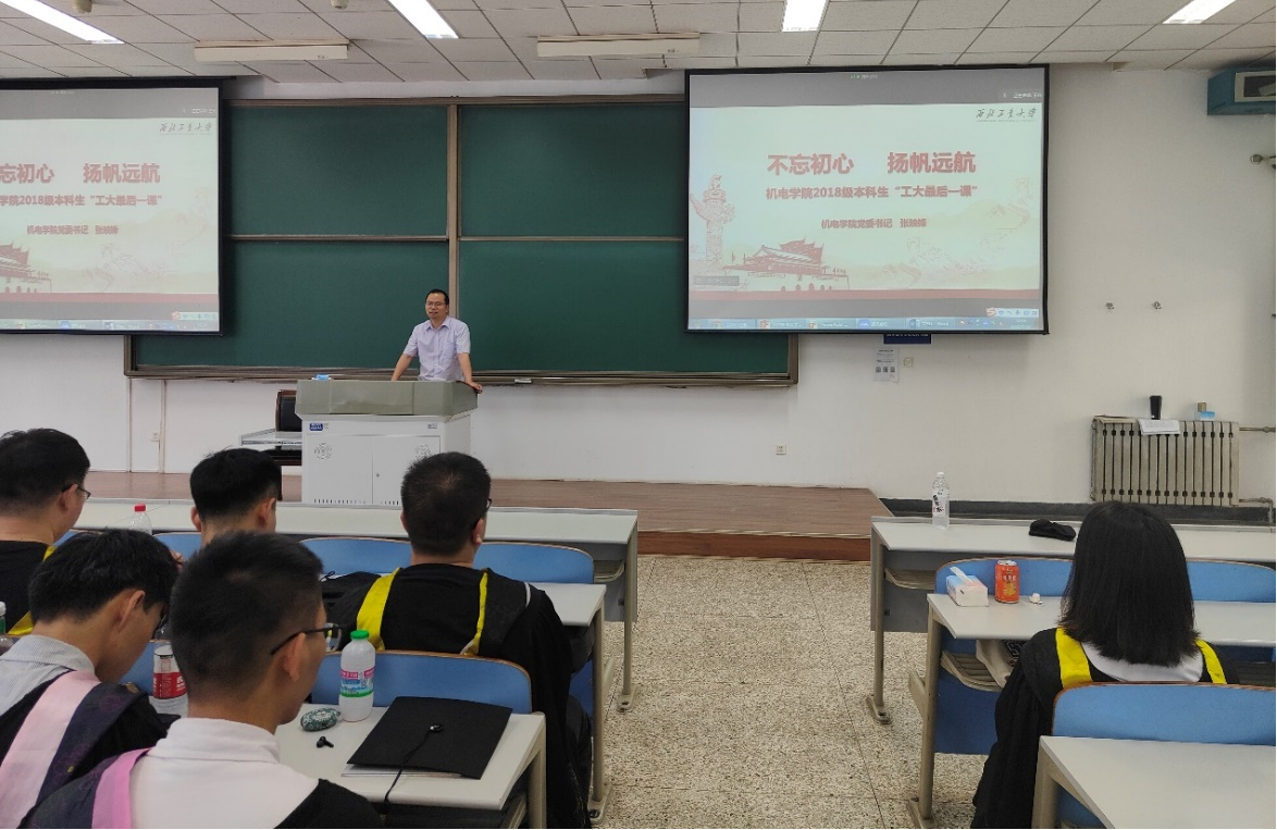长安校区通过线下线上结合的模式为2022届本科毕业生讲授了“工大最后一课”。他以“不忘初心,扬帆起航”为主题,与同学们一起总结过往成就,回顾大学学习生活和成长发展点滴,展望美好前景,期待光明未来。