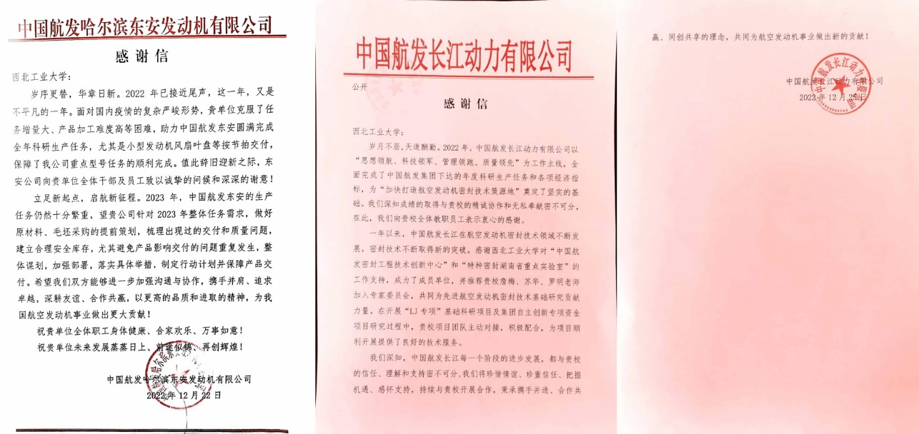 近日,中国航发哈尔滨东安发动机有限公司和中国航发长江动力有限公司分别给学校发来感谢信。在国内疫情的复杂严峻形势下,日韩无码