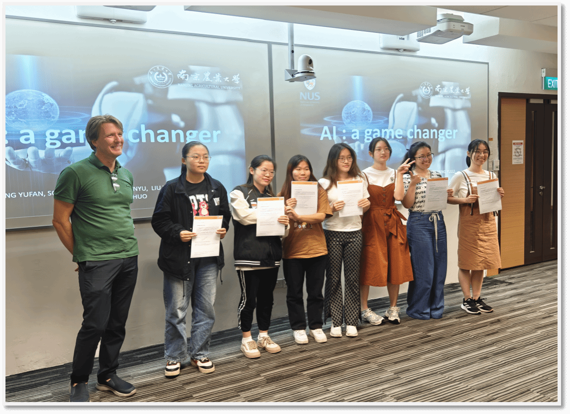 新加坡国立大学寒假课程结束后,授课教授根据结业汇报各小组的完成情况,评选最佳小组,并为最佳小组成员颁发优秀学员证明。