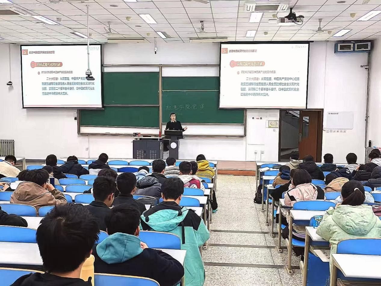 马克思主义学院陈诚平副教授以《深入理解中国式现代化的基础性、战略性支撑——学习党的二十届三中全会精神》为题,阐述了我国新时代下教育、科技、人才一体化的战略布局,强调党的二十届三中全会指出,“教育、科技、人才是中国式现代化的基础性、战略性支撑。号召同学抓住青春的大好时光,珍惜社会和国家给予的良好学习条件,不断提高自身能力,将自身命运同国家命运联系起来,为中国式现代化的推进贡献出自己的一份力。
