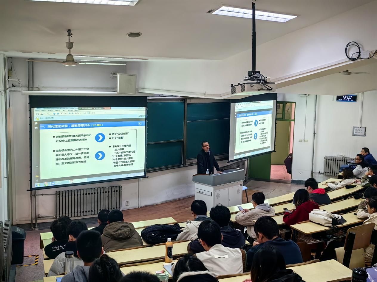 中央党校副校长谢春涛老师通过对党的二十届三中全会的深度解读,以《深入学习贯彻习近平总书记关于全面深化改革的一系列新思想、新观点、新论断和党的二十届三中全会精神》为题,就全会的重大意义,习近平总书记重要讲话精神、全面深化改革的重大举措以及党的领导的重要性作出了具体阐释,使同学进一步了解党的二十届三中全会精神,深刻地认识到全面深化改革的必要性和重要意义。