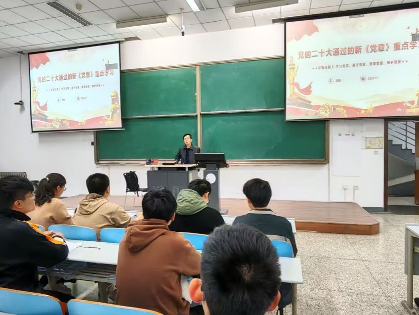 党委副书记高峻以《党的二十大通过的新<党章>重点学习》为主题,着重讲述了党章内容以及党组织的纪律,强调了听指挥、守纪律的重要性。明确了身处百年未有之大变局中,入党积极分子、发展对象及党员身负重任,当时刻严格要求自己,同时营造良好氛围,号召并带动身边群众,使越来越多的人一同奋斗,加快实现中华民族伟大复兴的中国梦。