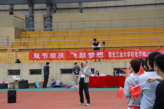 运动会在一片欢声笑语中开始,此次运动会的主题是迎接中秋和国庆同在一天的双节双庆。首先大家一起合唱我和我的祖国,同学们个个热情高涨、干劲十足;接着机电研会邀请了学院副书记刘平老师和研究生辅导员冯永涛老师给新生讲话。在介绍了活动相关规则后,同学更都摩拳擦掌、跃跃欲试,想在赛场上秀出自己的风采。