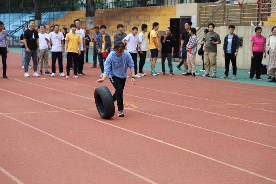 运动会的第三个项目上车轮滚滚,活动一开始,首先登场的是教职工们,赛场上的他们丝毫不减当年之力,滚着轮胎跑的飞快。教职工比赛结束后,同学们也积极的加入到比赛当中,看着他们在赛场上的英姿飒爽,真是赛出了速度,赛出了风度。