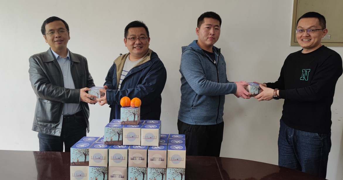 学生党支部代表向工业设计系党支部老师赠送柿子