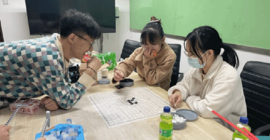 21205-9班同学们严格遵守学校防疫政策,在疫情期间坚持“非必要不外出”。在学院经费支持下班长提前征集班级同学意愿和空余时间,购买五子棋、桌游等文体娱乐用品,同时购买饼干、瓜子、饮料等休闲零食。大家根据自己兴趣爱好,自发分组展开多元娱乐活动,例如五子棋比拼环节,大家轮番上阵,挑战擂主;“谁是卧底”桌游环节,全员参与,踊跃发言,整个现场气氛迅速活跃起来,其乐融融。