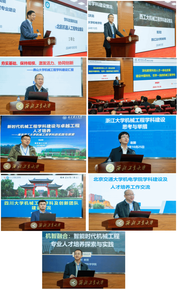 、重庆大学、湖南大学、燕山大学、广东工业大学、中南大学、东南大学、华南理工大学、西安电子科技大学、江苏大学、武汉理工大学、上海大学、浙江工业大学、南京理工大学、北京交通大学、太原理工大学、国防科技大学、浙江理工大学、电子科技大学、四川大学等机械学科负责人,分别围绕学科建设整体情况、学院改革经验、产教融合举措等内容做了分享报告。参会代表们纷纷表示要加强校际间的互学互通互鉴,共同促进机械工程学科发展。