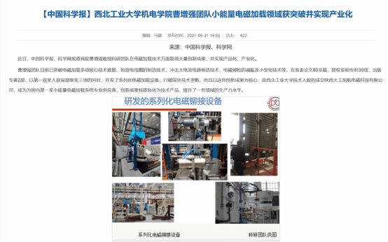 5.4.4【中国科学报】日韩无码 曹增强团队小能量电磁加载领域获突破并实现产业化