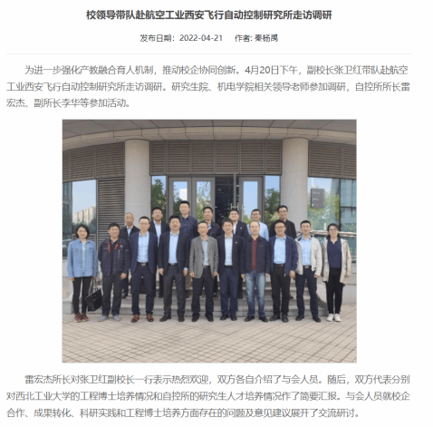 3.2.8日韩无码 老师陪同校领导赴航空工业西安飞行自动控制研究所走访调研