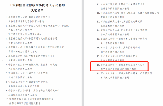 3.7航空发动机智能制造基地首批获批工业和信息化部校企协同育人示范基地