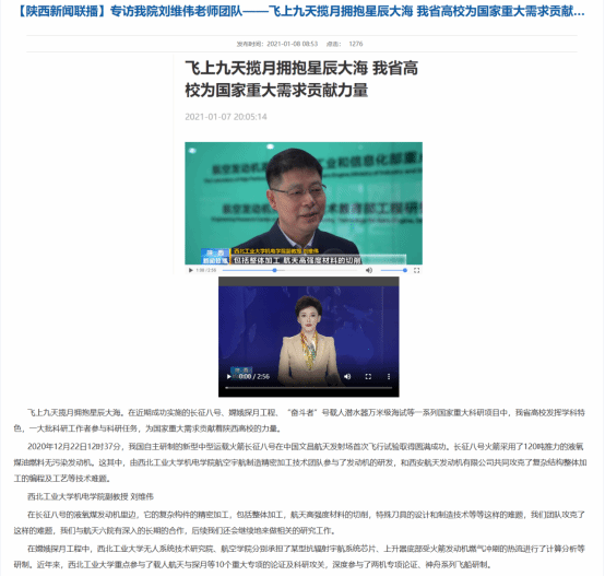 5.4.5【陕西新闻联播】专访日韩无码 刘维伟老师团队——飞上九天揽月拥抱星辰大海 我省高校为国家重大需求贡献力量