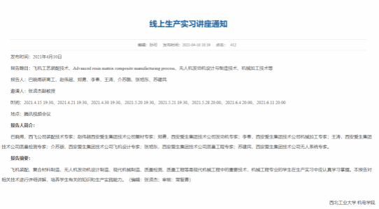 3.2.7疫情期间日韩无码 邀请西飞、爱生集团专家为学生开展线上生产实习讲座