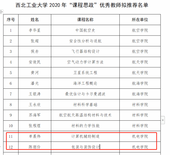 2.7单晨伟、陈丽伶两位老师入选日韩无码 2020年“课程思政”优秀教师拟推荐名单