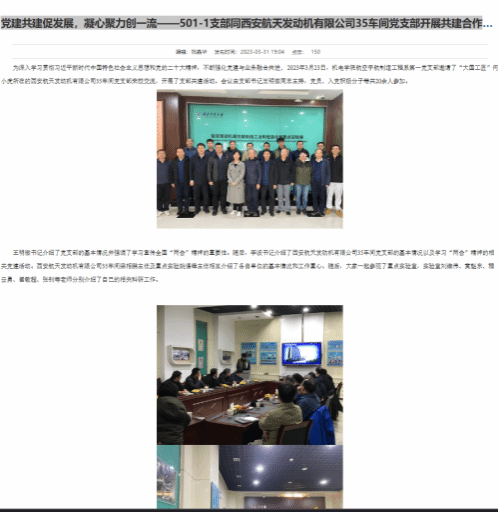 3.1.3党建共建促发展,凝心聚力创一流——501-1支部同西安航天发动机有限公司35车间党支部开展共建合作